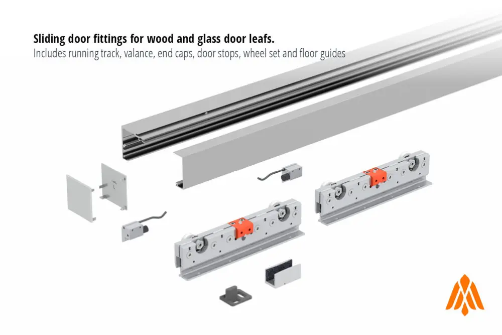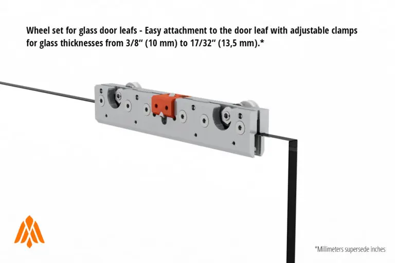 Smooth and quiet ball-bearing wheels with universal threads for different Falkenstein door mounts. Tested for 100,000+ cycles at full weight capacity.
