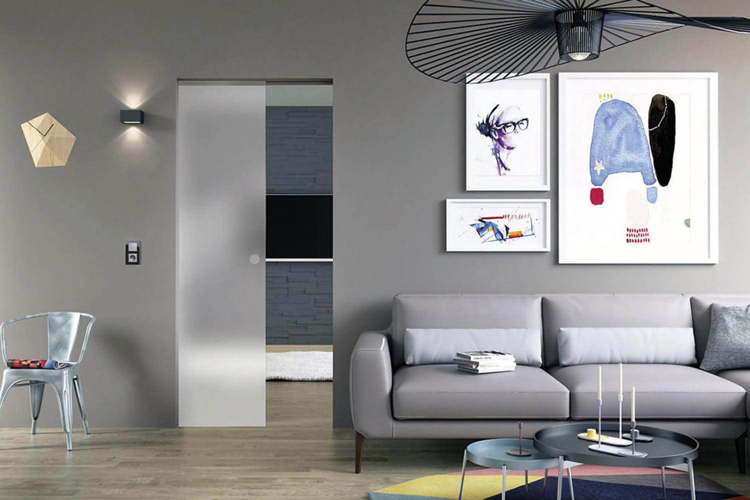 - Space Saver: Replaces swinging doors, freeing up floor space.